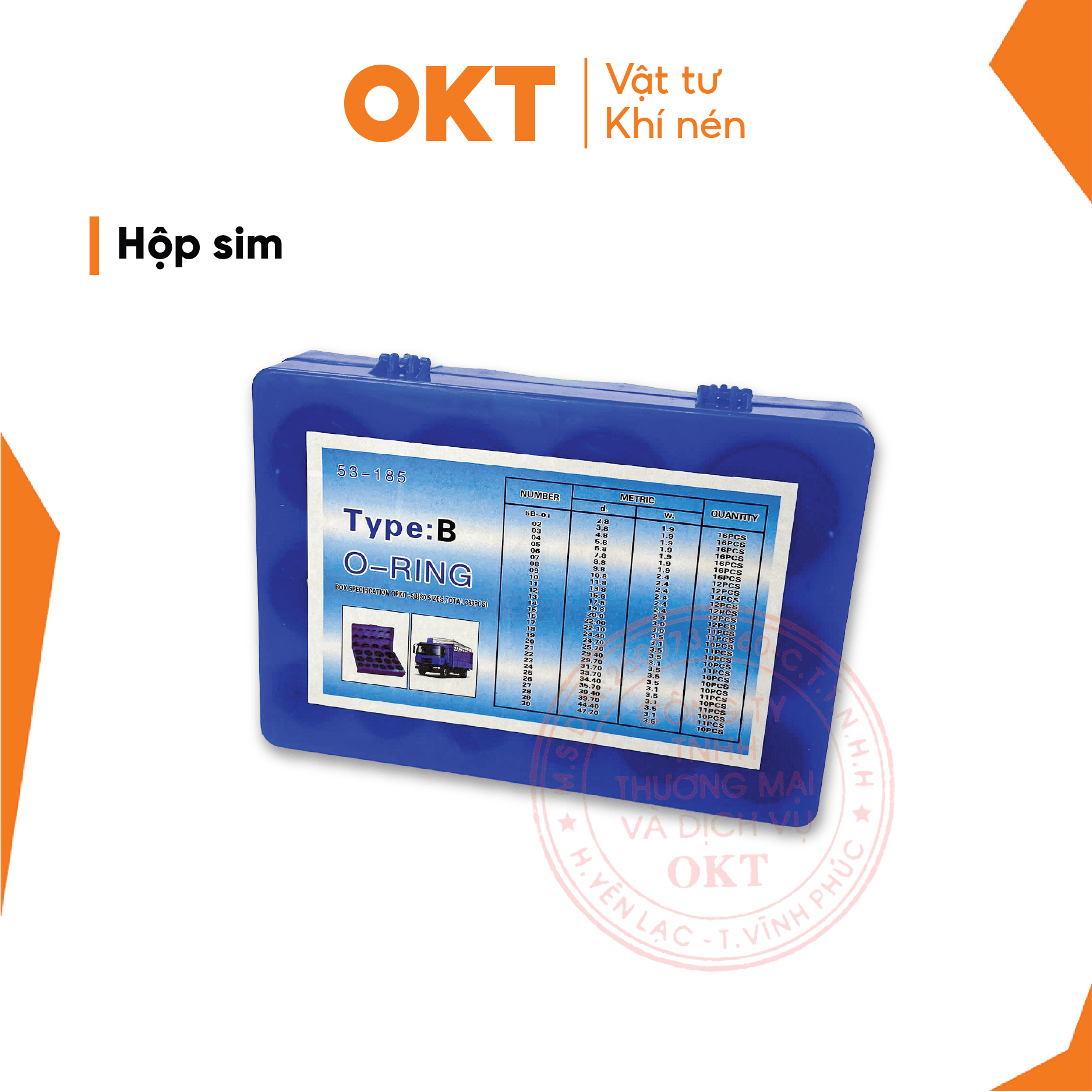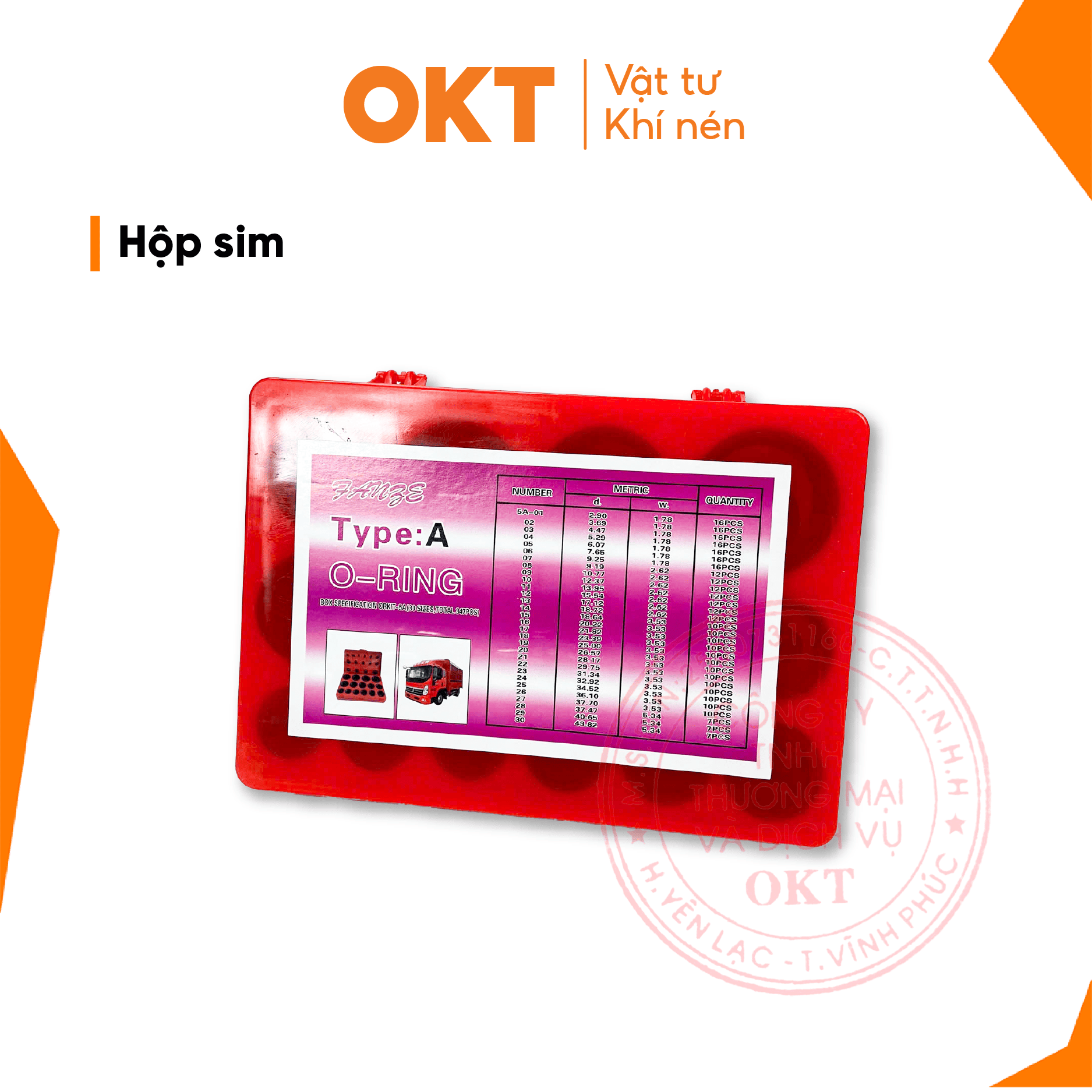 1.Hộp gioăng sim O-RIING: chịu nhiệt dành cho xe cơ giới thường chứa các vòng gioăng cao su chuyên dụng, giúp đảm bảo độ kín và chống rò rỉ trong hệ thống động cơ hoặc hệ thống thủy lực. 2. Chi Tiết Sản Phẩm: Những gioăng này thường được làm từ cao su NBR (Nitrile Butadiene Rubber), có khả năng chịu dầu, chịu nhiệt độ cao (lên đến 120°C), và chống mài mòn.